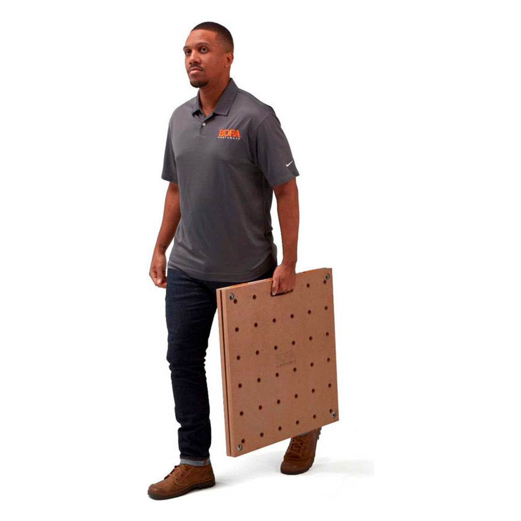 La fente de transport vous permet de transporter le plateau d'une main et votre plan de travail Centipede® dans son sac