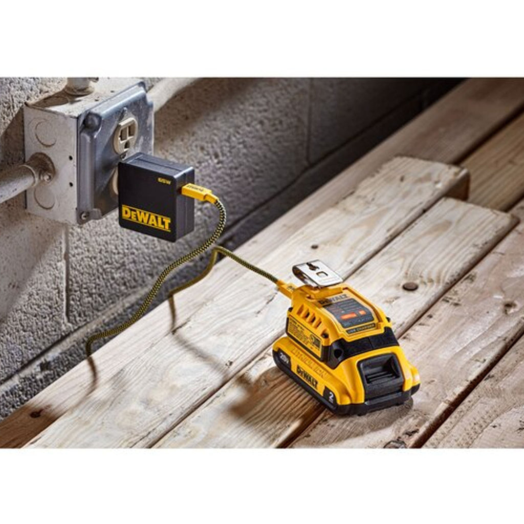 Chargez facilement vos appareils et accessoires compatibles avec cette trousse de chargement USB. Chargez rapidement vos batteries 20 V MAX* et FLEXVOLT® de DEWALT avec la puissance et le port USB-C bidirectionnel de 100 W de cette trousse de chargement, qui recharge également vos autres appareils personnels (jusqu’à 100 W). Son port USB-A agit comme un adaptateur pour charger des appareils via un fil USB classique (jusqu’à 12 W). La trousse réunit notre chargeur USB DCB094, un câble USB de 100 W, un bloc d’alimentation de 65 W et une pince de ceinture pour le garder sur vous.