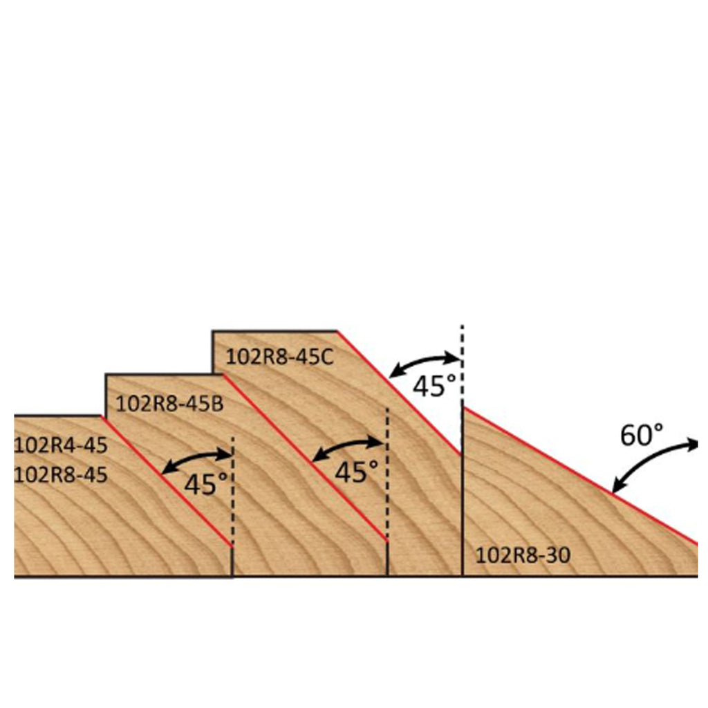 Cette mèche à chanfrein à pointe en carbure à double cannelure avec guide à roulement à billes est recommandée pour de nombreux projets à plusieurs faces, menuiseries et bords adoucis. Le foret crée un chanfrein uniforme sur le bord de n'importe quelle pièce pour ajouter du caractère tout en conservant des lignes géométriques nettes.