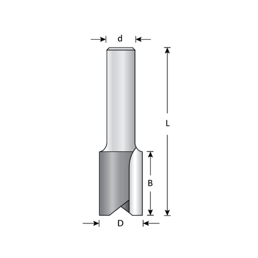 Mèche toupie 1/2'' de diamètre, pointe en carbure, embout droit, 2 cannelures, tige 1/4'', longueur 2'' Mèche toupie 1/2'' de diamètre, pointe en carbure, embout droit, 2 cannelures, tige 1/4'', longueur 2''