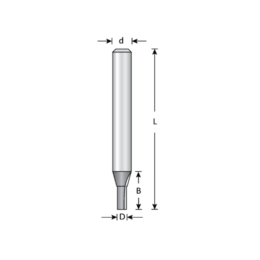 Mèche toupie 15 mm de diamètre, pointe en carbure, embout droit, 2 cannelures, tige 1/4'', longueur 2'' Mèche toupie 15 mm de diamètre, pointe en carbure, embout droit, 2 cannelures, tige 1/4'', longueur 2''