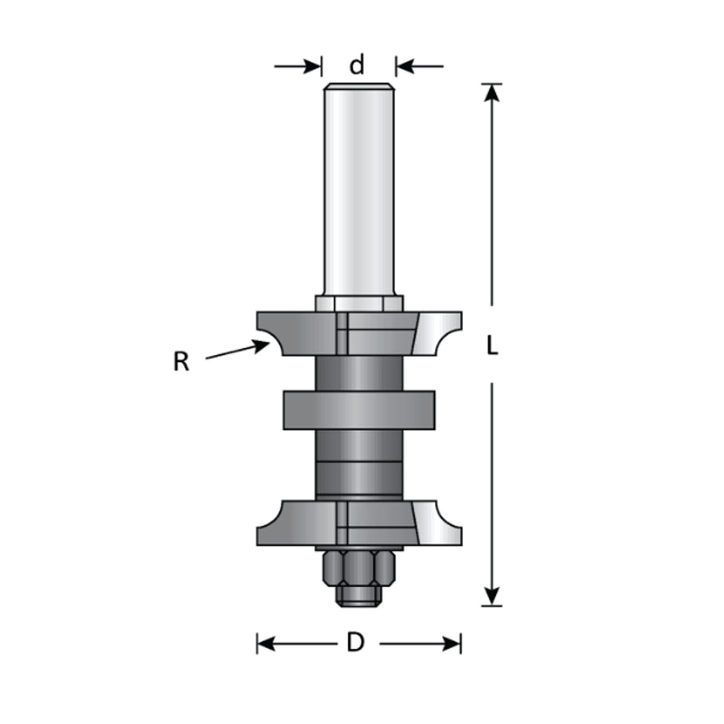 Cet ensemble d'arrondi ultime est entièrement réglable pour arrondir les deux coins, en haut et en bas, en un seul passage, en ajustant l'assemblage des entretoises sur l'arbre.