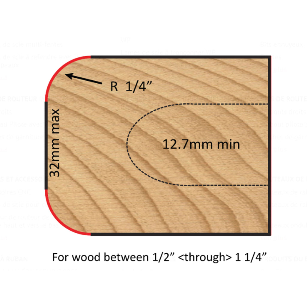 Remarque : Pour une épaisseur de bois de 3/4 po et plus, utilisez un roulement à billes BB-28M d'une épaisseur de 9,0 mm.