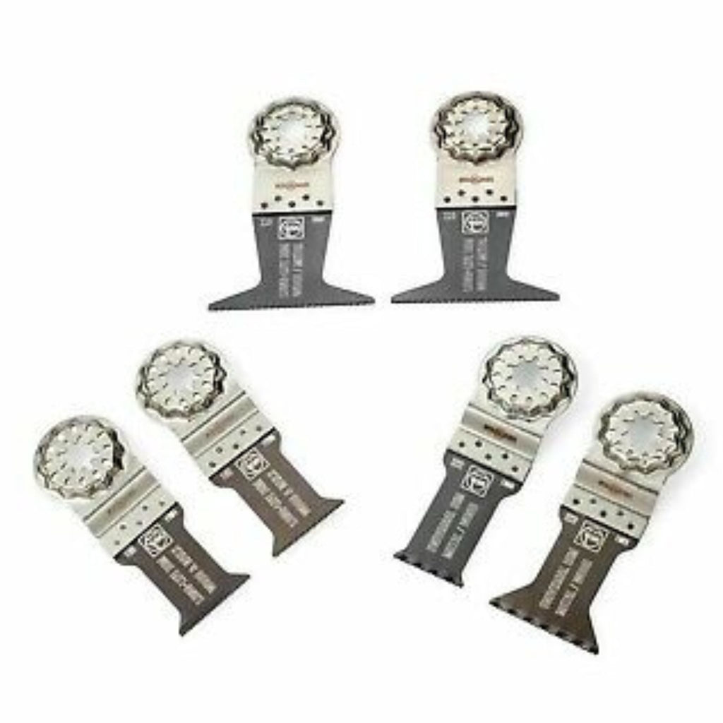 6 lames de scie plongeantes E-Cut pour les travaux de sciage dans le bois et le métal. Conviennent pour tous les MultiTools FEIN ainsi que pour tous les autres MultiTools courants du marché. Prix intéressant en set par rapport au prix à l’unité. Contenu : resp. 2 lames de scie E-Cut Long-Life (2 [50] x 1-3/8 [35] in[mm], 2 [50] x 2-1/2 [65] in[mm]), resp. 1 lame de scie universelle E-Cut (2-1/4 [55] x 1-1/8 [28] in[mm], 2-1/4 [55] x 1-3/4 [44] in[mm]).