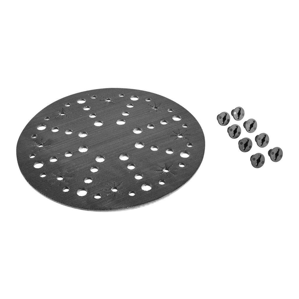 Le pad d'interface relie le tampon de ponçage ST-D220/48-LHS 2 225 à l'abrasif approprié, ce qui garantit des résultats de ponçage parfaits avec la ponceuse longue portée PLANEX LHS 2 225 EQ (I). absolument nécessaire en combinaison avec le plateau de ponçage ST-D220/48-LHS 2 225 fixation au plateau de ponçage à l'aide de 8 vis plastique fournies tourner simplement les vis à l'aide d'une deuxième vis ou d'une pièce de monnaie (aucune tournevis requis) surface velcro Stickfix pour fixer les abrasifs et permettre un changement rapide de l'abrasif