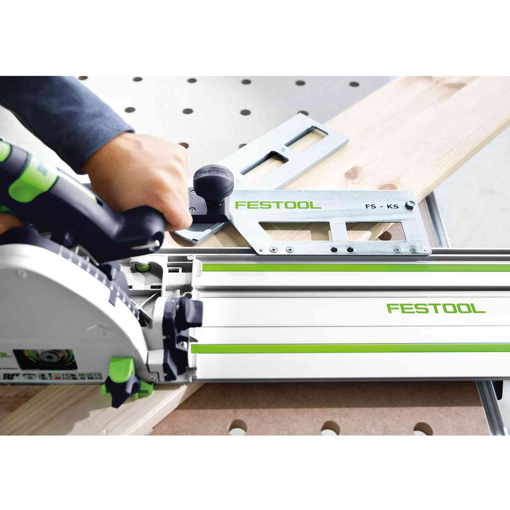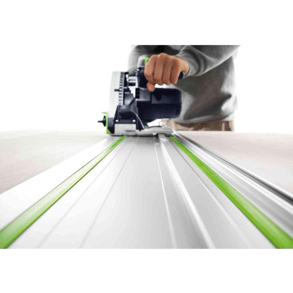 Connectez les rails à l’aide des connecteurs de rails de guidage Festool pour effectuer des découpes sans limites.