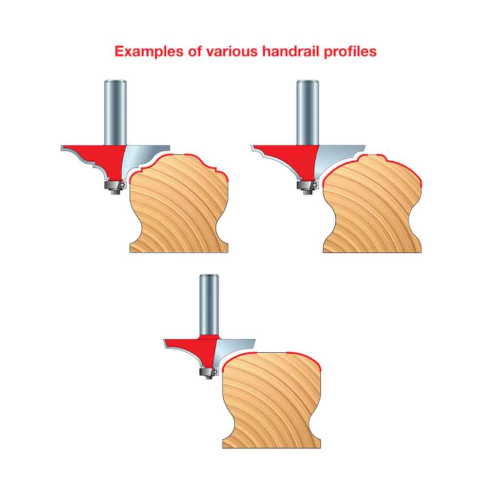 Idéal pour : fraiser de beaux bords de table ou fraiser la surface supérieure des mains courantes