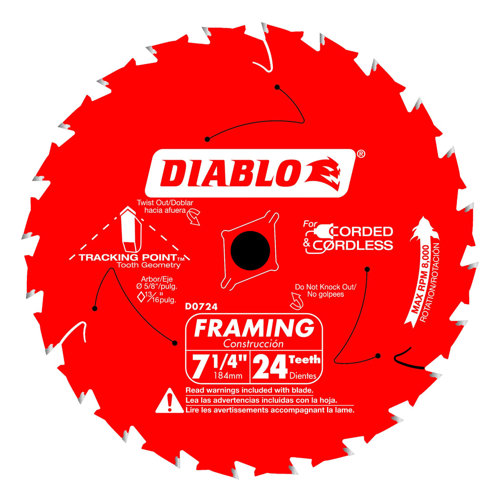 La conception des dents Tracking Point™ permet des coupes droites et contrôle l'usure du carbure pour une durée de vie de coupe jusqu'à 5 fois plus longue que les autres lames et 2 fois la durabilité du bois avec clous , également une efficacité de coupe extrême dans les scies à fil et sans fil (65 % de coupes en plus par charge de batterie dans les scies sans fil par rapport aux autres lames)