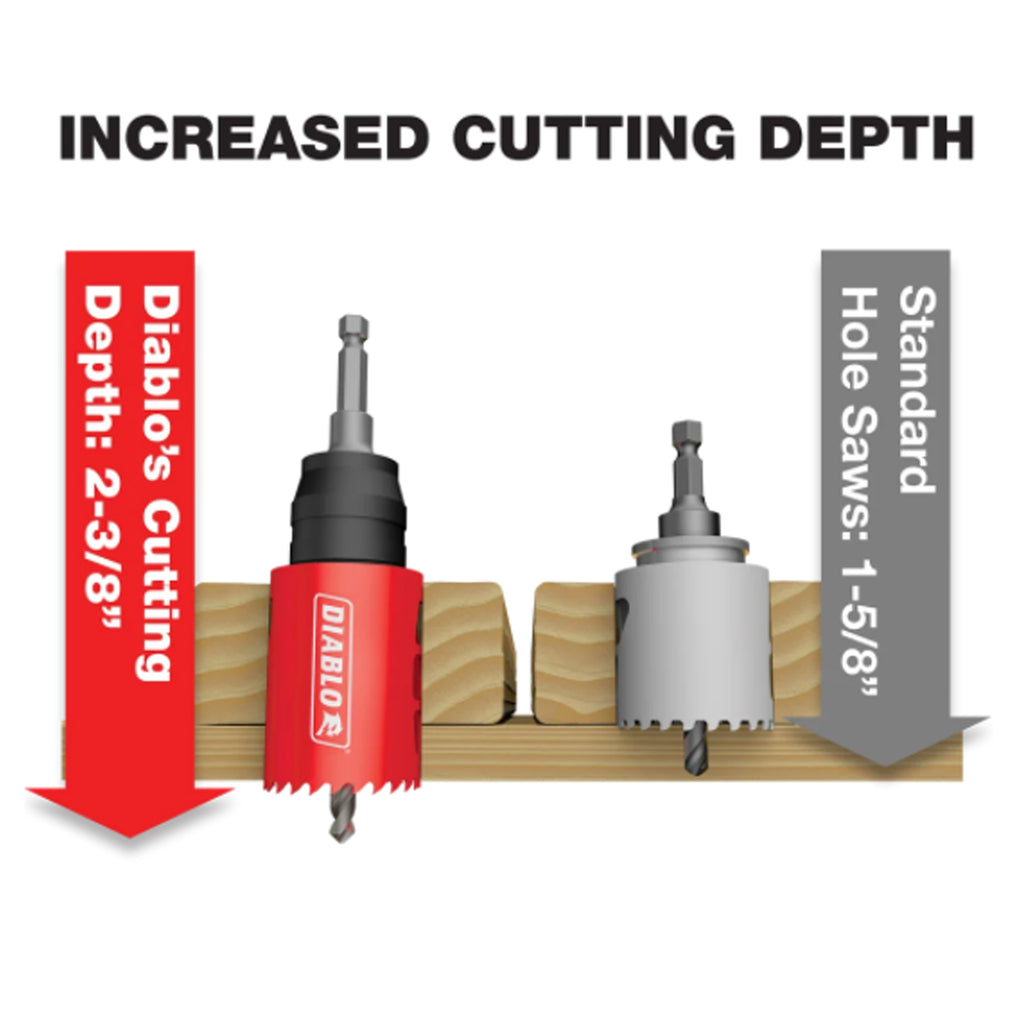 Le mandrin s'adapte à toutes les scies-cloches Diablo, de 5/8 po à 6 po de diamètre