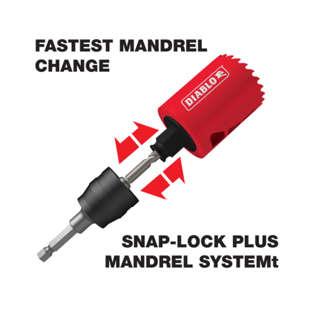 Le mandrin s'adapte à toutes les scies-cloches Diablo, de 5/8 po à 6 po de diamètre