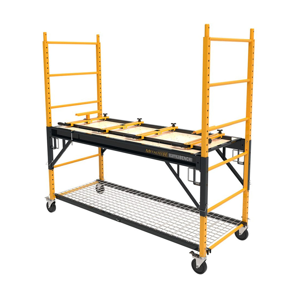 CAPACITÉ DE CHARGE: ÉCHAFAUDAGE: 1100 LB (500 KG). POIDS COMBINÉ DE L’UTILISATEUR + MATÉRIAUX. ÉTAGÈRE DE RANGEMENT: 200 LB (90,7 KG) POIDS RÉPARTI
