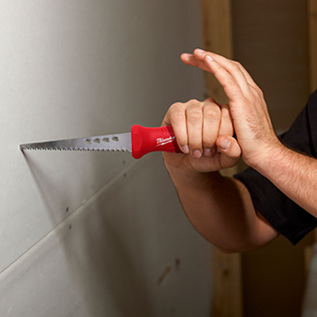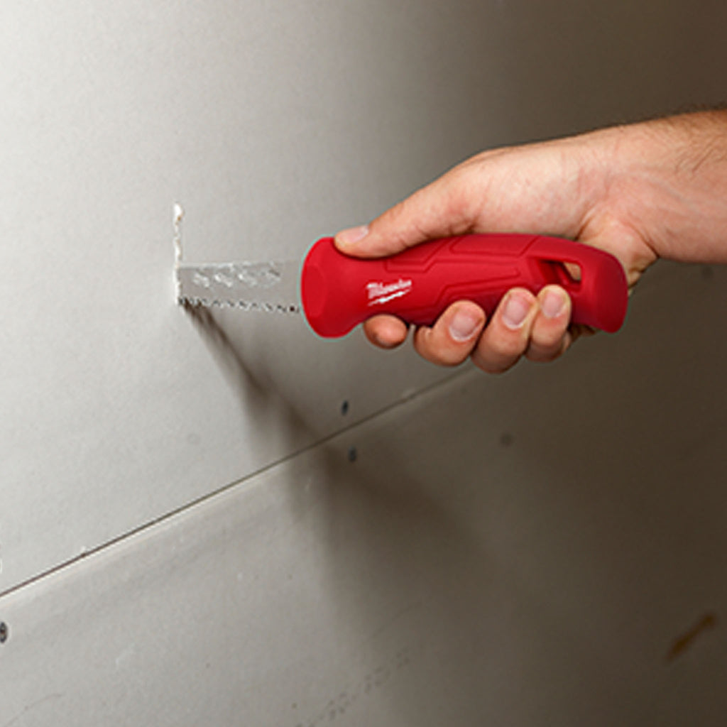La scie sauteuse à râper est la seule scie sauteuse sur le marché à intégrer des trous de râpage le long du côté de la lame pour élargir rapidement les trous ou lisser les bords rugueux du placoplâtre après une coupe. Dotée d'encoches nervurées pour augmenter la prise en main de la poignée, la nouvelle scie sauteuse est également dotée d'une lame épaisse de 6 pouces pour plâtre/cloison sèche pour une durabilité et une durée de vie accrues. La pointe perçante rend cet outil idéal pour pénétrer dans les cloisons sèches, et la lame vous permet de couper facilement le plâtre. Avec un trou pour lanière prêt à être attaché et une poignée anti-roulis, la scie à râper MILWAUKEE® est parfaite pour les entrepreneurs et les constructeurs.