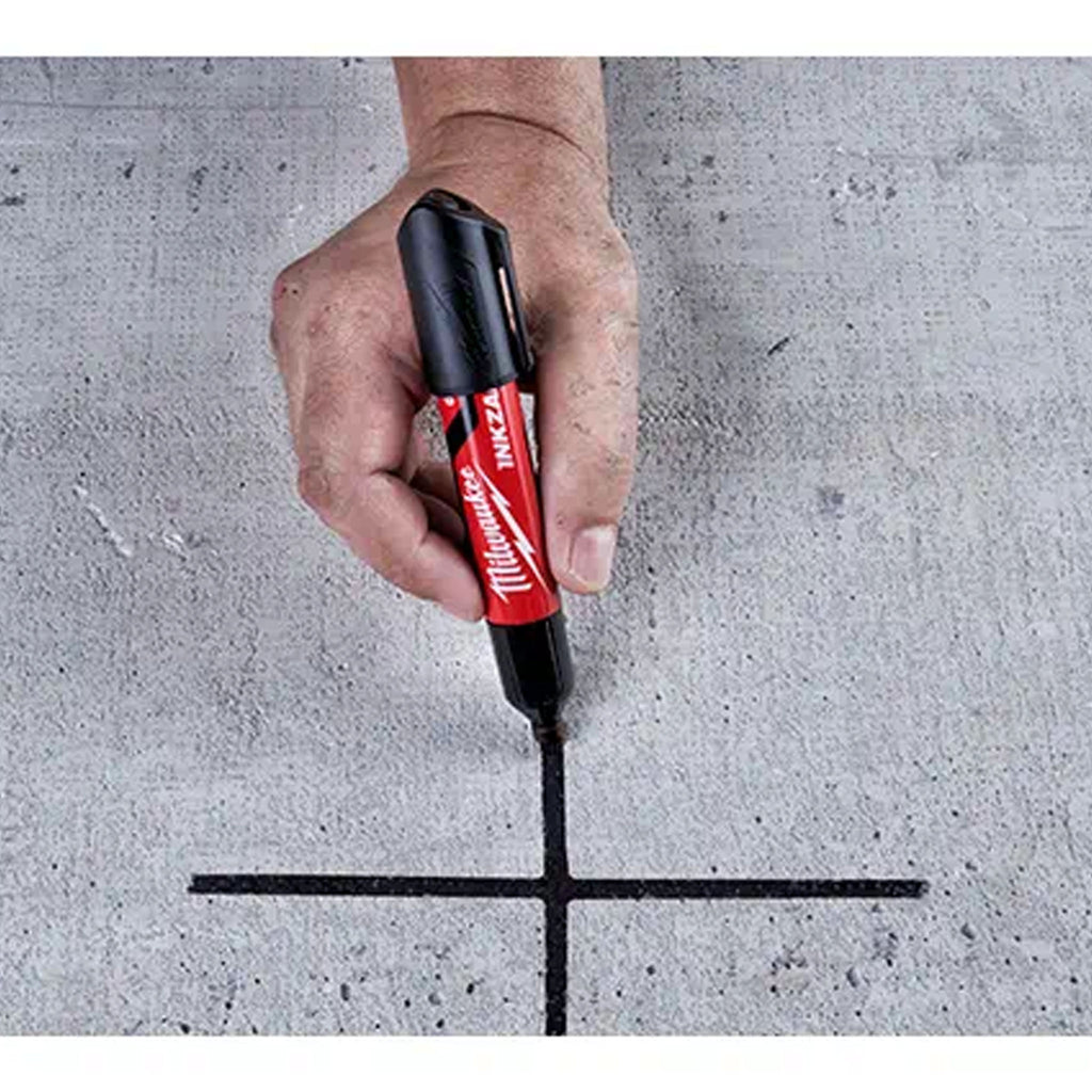 Les marqueurs de chantier à grande pointe biseautée INKZALL™ sont optimisés pour les conditions du chantier. La grande pointe biseautée vous permet d'écrire plus gros et plus gras pour une visibilité claire. Le marqueur de construction est doté d'une pointe durable conçue pour écrire sur des surfaces poussiéreuses, humides ou huileuses. Il résiste au colmatage et vous offre un marquage propre et continu. L'encre à séchage rapide réduit également le risque de bavures après utilisation. Le marqueur permanent peut être laissé sans capuchon jusqu'à 72 heures et reste complètement fonctionnel. Nos marqueurs MILWAUKEE® INKZALL™ mettent en valeur notre mission incessante de vous fournir des solutions innovantes et notre engagement envers une durabilité de premier ordre.