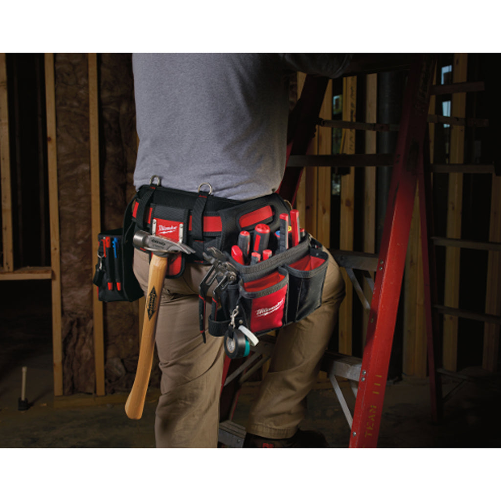 L'équipement de travail de Milwaukee n'est rien d'autre qu'un service intensif. Conçu avec des artisans professionnels à l'esprit et construit avec du nylon 1680 deniers, des coutures rivetées et de la quincaillerie entièrement métallique, l'équipement de travail Milwaukee est jusqu'à 5 fois plus durable que les produits concurrents et offre aux utilisateurs une durabilité, un confort et une organisation inégalés. La ceinture de travail de l'électricien offre aux utilisateurs 29 poches pour organiser leurs outils et intègre une base solide qui permet à la ceinture de rester droite lorsqu'elle est posée sur une surface plane. Les poignées intégrées permettent de retirer les sacs individuels et de les transporter facilement d'une tâche à l'autre, tandis que le clip de ruban à mesurer en métal stocke en toute sécurité un ruban à mesurer pour un accès facile. Une poche anti-perforation doublée de plastique permet aux utilisateurs de ranger des objets tranchants, tels que des scies sauteuses, sans craindre d'endommager leurs sacs et la ceinture de travail incluse est rembourrée et respirante pour un confort toute la journée. Cette combinaison de durabilité et de fonctionnalité extrêmes confirme l’engagement de Milwaukee à fournir des solutions innovantes et durables à l’utilisateur final.