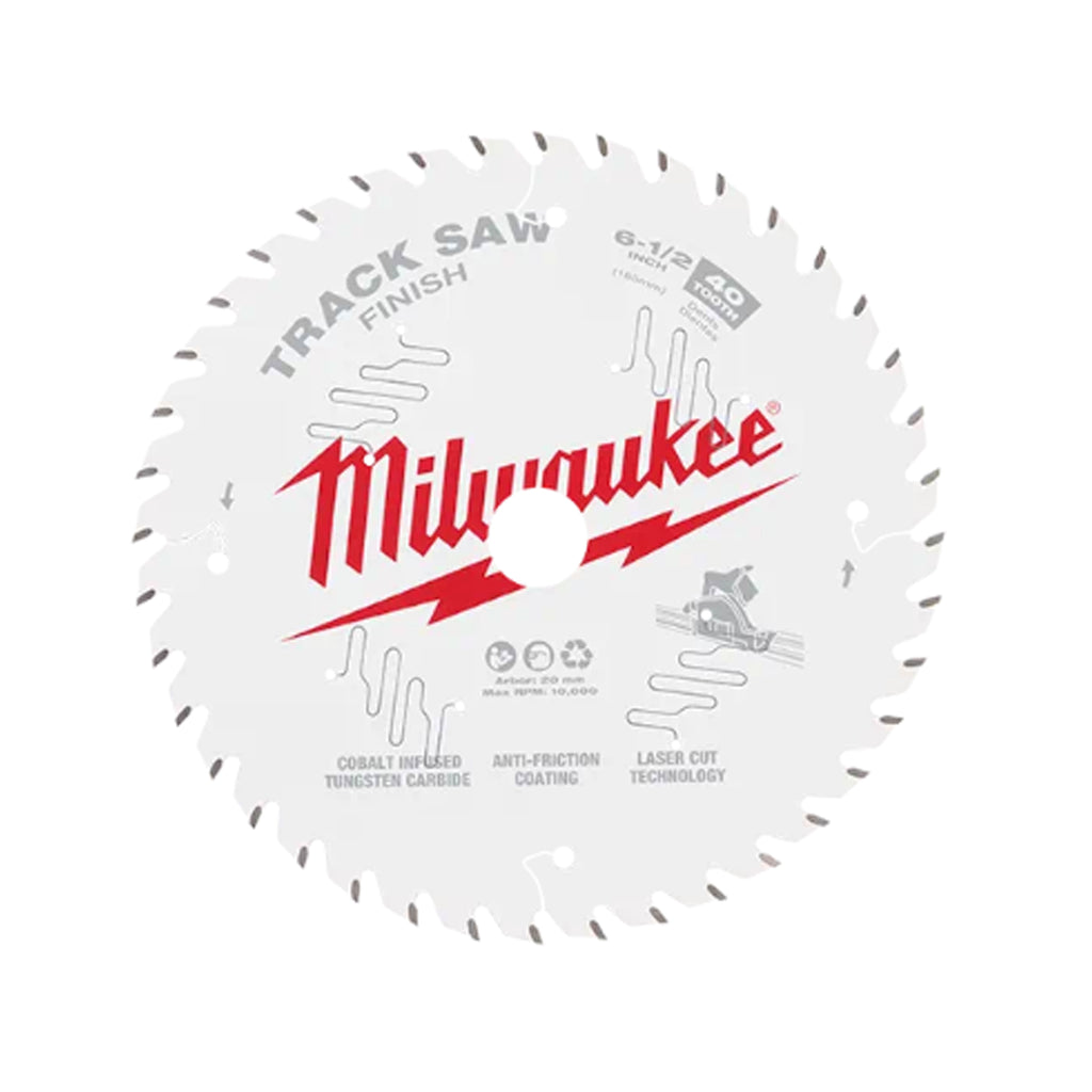 MILWAUKEE® Track Saw Blades were specifically designed to exceed the expectations of contractors for cut quality and accuracy while also delivering a longer life even in the most demanding plunge cut applications. The blades are designed utilizing application-specific Cobalt Infused Tungsten Carbide to extend cutting life and maintain tip sharpness. The blades feature a Laser cut body and Laser Cut Vibration Slots to reduce wobble and warping. With an Anti-Friction Coating, the blades resist corrosion and gumming. A thin kerf™ design delivers faster cuts as well as more cuts per charge when using a cordless tool.