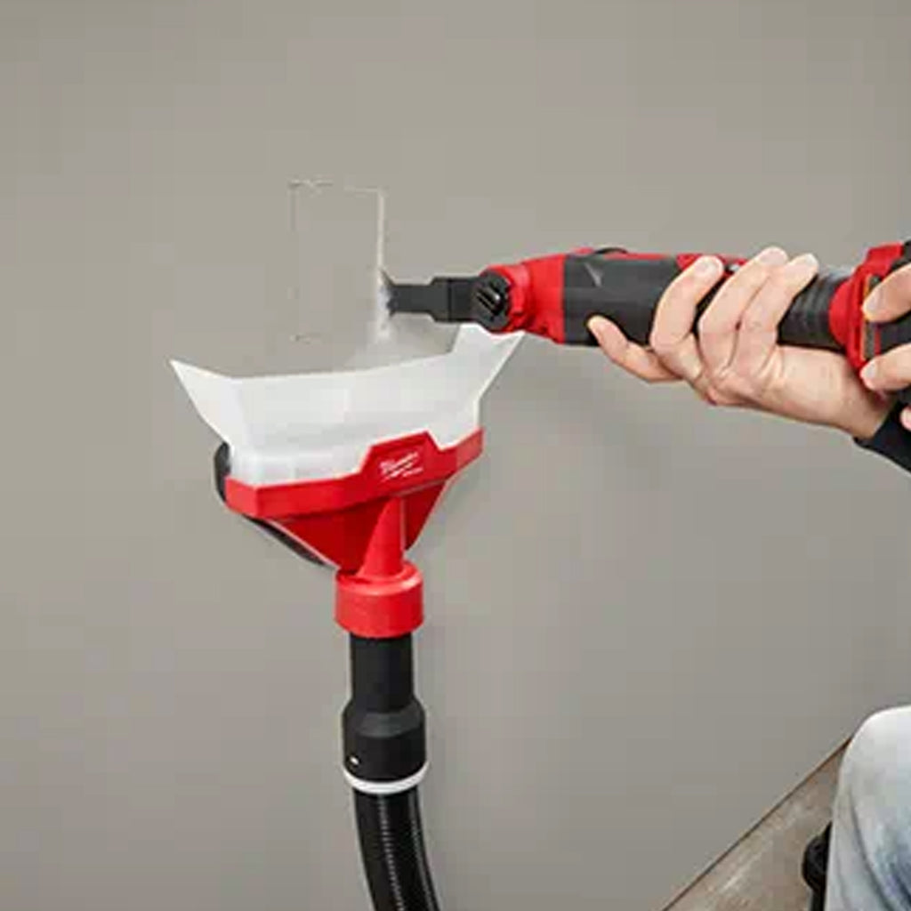 Le dépoussiéreur AIR-TIP™ collecte la poussière pendant l'utilisation grâce à son joint en caoutchouc qui maintient l'aspiration au mur, réduisant ainsi le temps de nettoyage ultérieur. Une fois connecté à un aspirateur eau et poussière, il utilise l'aspiration de l'aspirateur pour une fixation murale et un travail mains libres. Vous pouvez couper ou percer au-dessus de l'entonnoir pendant que l'aspirateur est en marche pour capturer davantage de débris. Le joint en caoutchouc maintient l'aspiration tout au long de l'utilisation, réduisant ainsi la quantité de poussière en suspension dans l'air et au sol, et libérant ainsi la main qui tiendrait autrement la buse d'aspiration. Le dépoussiéreur MILWAUKEE® AIR-TIP™ est compatible avec d'autres marques d'aspirateurs eau et poussière de diamètres 1-1/4'', 1-7/8'', 2-1/2'' et fait partie de la gamme d'accessoires d'aspirateurs professionnels AIR-TIP™.