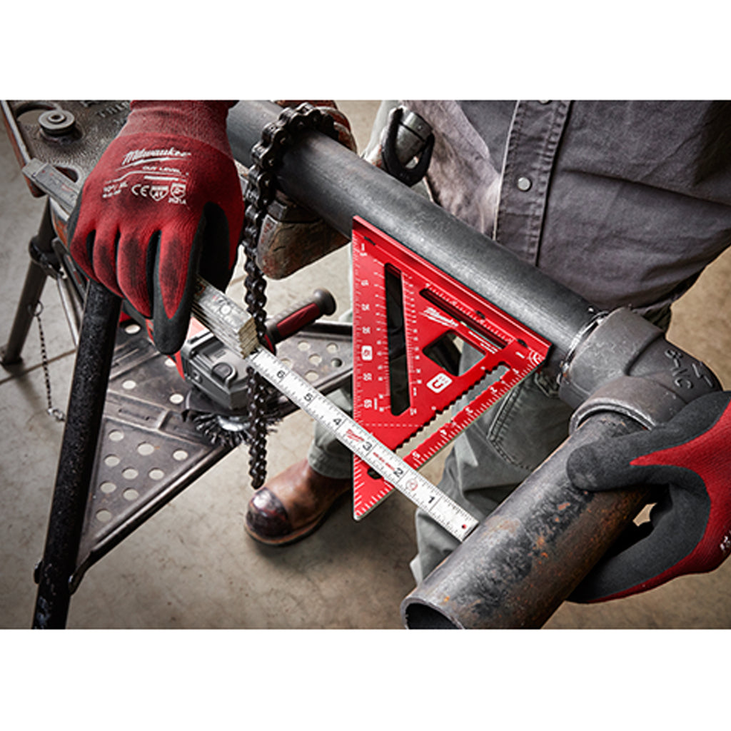 L'équerre de charpente aimantée de 7 po possède un cadre plus robuste et représente l’équerre de charpente la plus polyvalente qui soit. L’équerre de calcul de fermes comprend trois aimants en terres rares procurant une prise solide sur les métaux ferreux. Les encoches de chantournage de 1 à 6 po vous permettent de facilement mesurer et fendre des planches avec précision. La découpe de 1 po dans l’équerre de charpente permet d’appuyer des tuyaux afin de les couper plus facilement sur le chantier. Un cadre renforcé vous offre une plus grande durabilité sur le chantier, alors que les marques au laser à haute visibilité rendent l’équerre facile à lire.