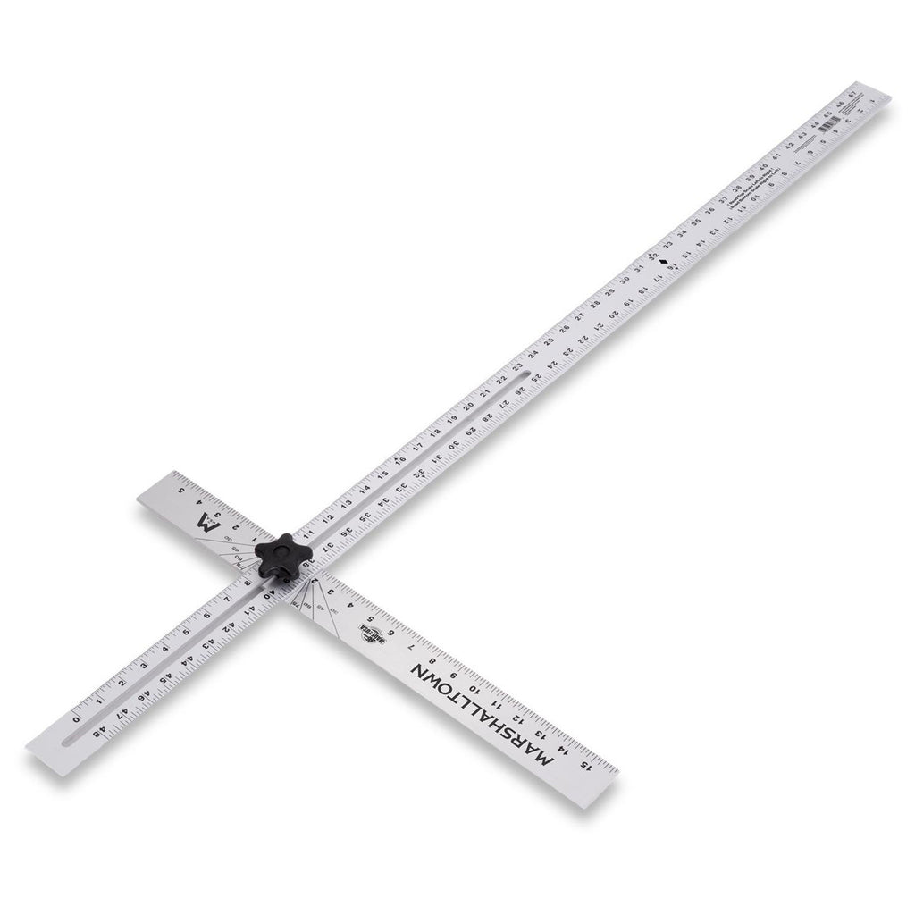 L'équerre pour cloisons sèches est fabriqué avec une finition anodisée argentée et des chiffres de peinture époxy noire pour une longue usure et une lisibilité. Ils ont des décisions inversées et des marquages de goujons pour permettre des coupes rapides et précises. Les rivets de type avion fixent les pales pour une précision à long terme. Le Handi-Square Réglable T-Square est fabriqué à partir d’aluminium extrudé durable et s’ajuste de 0° à 360°.