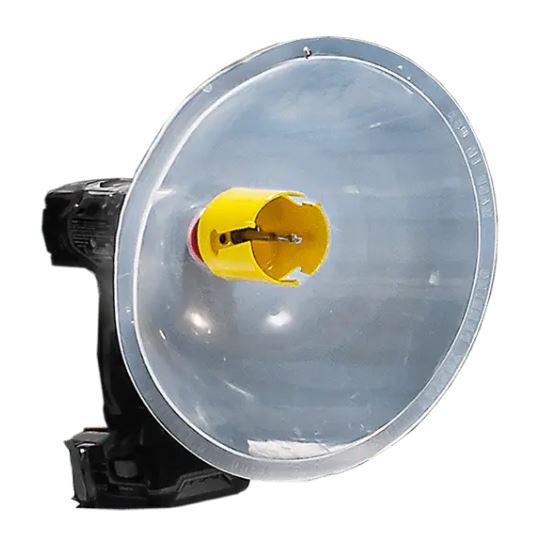 Le bol à poussière flexible du foreur se comprime contre le plafond ou le mur et emprisonne toute la poussière et les débris pendant que vous percez. Le bol s'adapte à la plupart des perceuses et scies cloches standards sans aucun réglage nécessaire.