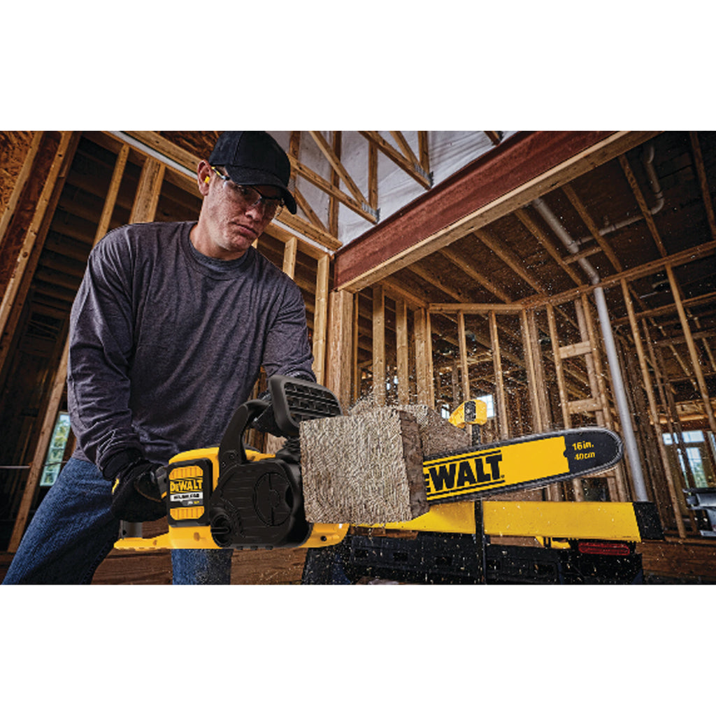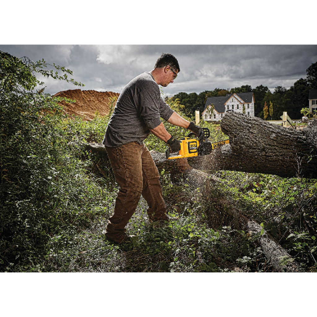 La tronçonneuse sans fil FLEXVOLT 60V MAX * permet de réaliser des travaux de construction et de démolition difficiles. Il est doté d'un guide-chaîne et d'une chaîne de 16 po à faible rebond pour couper les gros membres, les bûches et les poutres épaisses. Il vous donne la puissance dont vous avez besoin avec la commodité de notre plate-forme de batterie FLEXVOLT 20V / 60V MAX *. Obtenez jusqu'à 70 coupes par charge ** sur une poutre en bois de pin traité sous pression de 6 po x 6 po. Cette liste comprend l'outil uniquement. Achetez la batterie séparément.