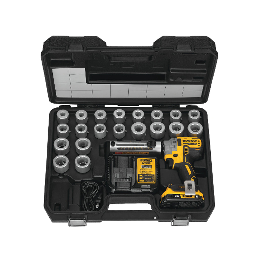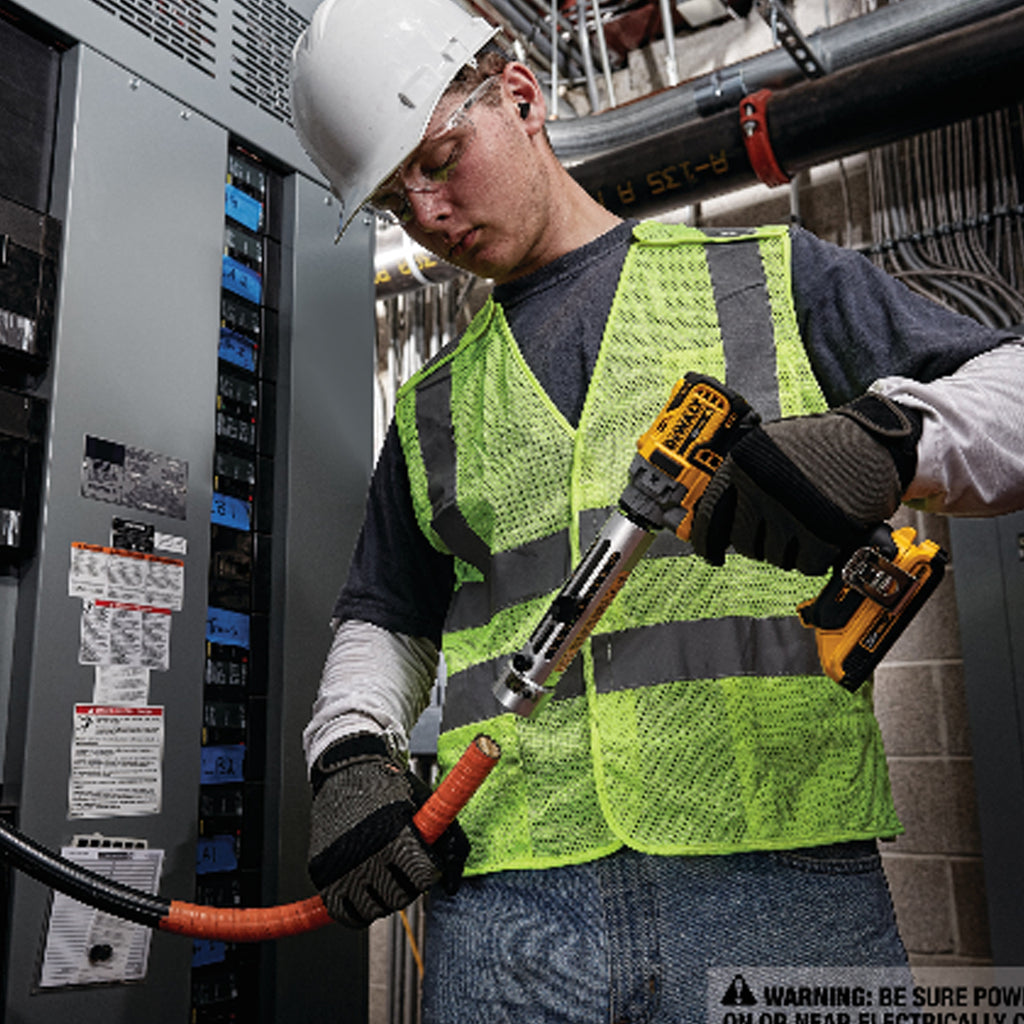 Le dénudeur de câbles sans balais 20V MAX * XR® dénude proprement et uniformément le câble électrique sans couteau exposé. Il dénude rapidement les câbles en cuivre et aluminium de 6 AWG à 750 MCM CU et 900 MCM AL. Des coussinets à dégagement rapide et un tableau de référence sont inclus pour couvrir la gamme de diamètres de câble. Déposez la lame et augmentez la productivité avec cette solution innovante pour le dénudage de câbles de grand diamètre.