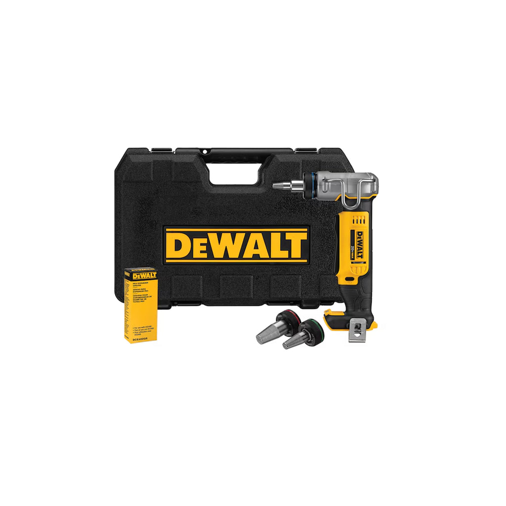 Évasez les tuyaux en PEX de type A de 3/8 po à 1 po à l’aide de cet évaseur sans fil 20 V MAX* de 1 po, le plus rapide sur le marché** Fabriqué avec fierté aux États-Unis avec des matériaux de source mondiale. Sa tête rotative automatique assure un évasement uniforme. Son éclairage à DEL intégré et sa gâchette allongée en font un outil des plus commodes dans les espaces restreints ou faiblement éclairés. Il vous suit n’importe où sur le chantier grâce à son crochet de suspension et sa pince de ceinture. Une gaine ergonomique en caoutchouc sur la poignée procure une prise en main confortable du début à la fin de votre journée de travail. L’outil est conçu pour les têtes d’expansion pour tuyau en PEX de DEWALT, mais est également compatible avec celles des marques concurrentes.
