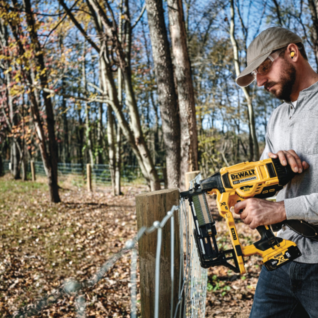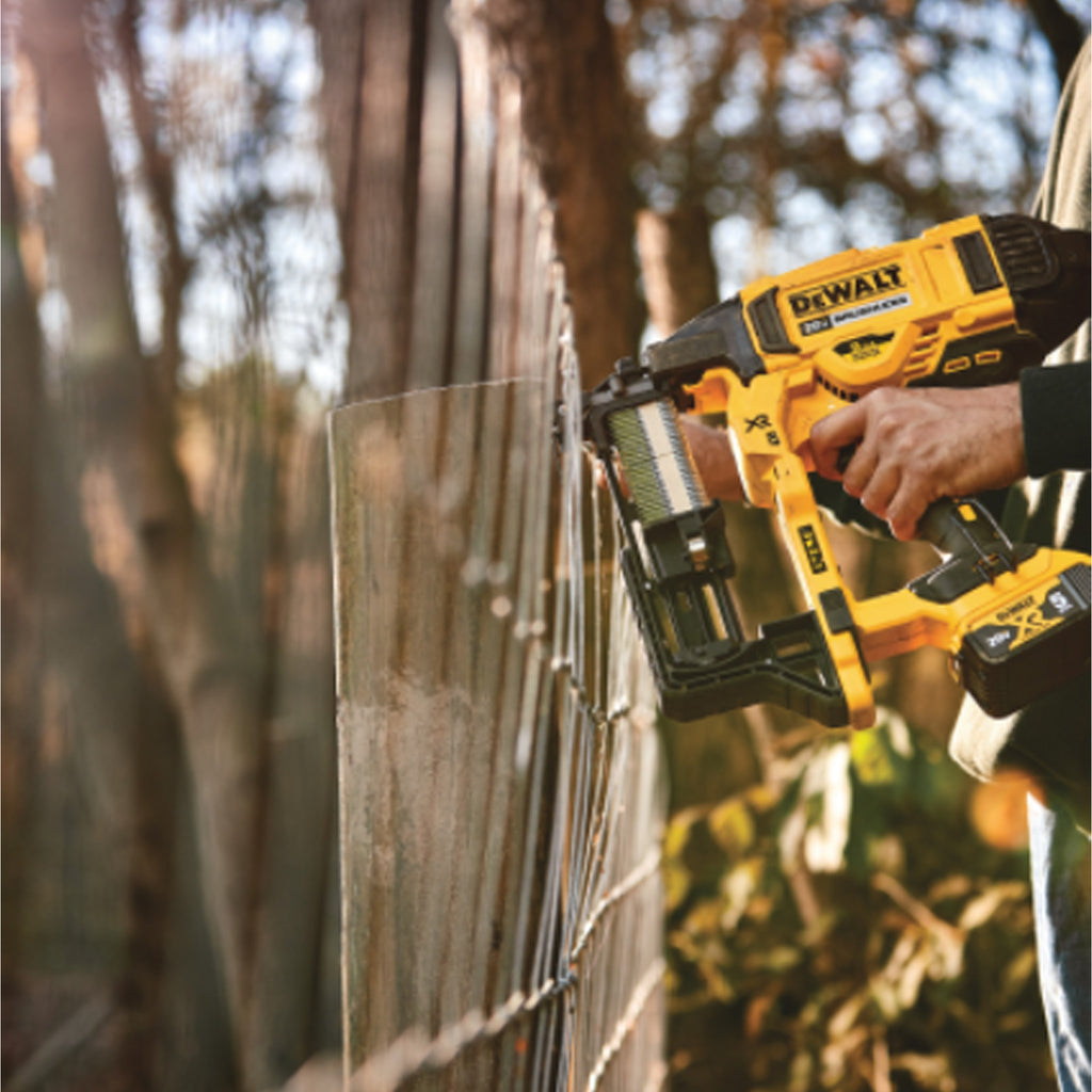 Conçue pour les applications rurales, la brocheuse sans fil DEWALT® fonctionne entièrement à batterie, éliminant la nécessité d’utiliser des piles à combustible et les tracas associés à l’utilisation d’un tuyau et d’un compresseur. Les réglages sans outil de la puissance et de la profondeur d’entraînement ainsi que le déblocage des coincements sans outil donnent à l'utilisateur la confiance nécessaire pour effectuer le travail rapidement et efficacement Sa conception ergonomique, sa polyvalence et sa commodité en font un outil tout indiqué pour les travaux de pose de clôtures agricoles et de services publics. Compatible avec les tailles communes d’agrafes de clôture DEWALT de calibre 9, soit 1 1/2 po, 1 3/4 po et 2 po (vendues séparément).