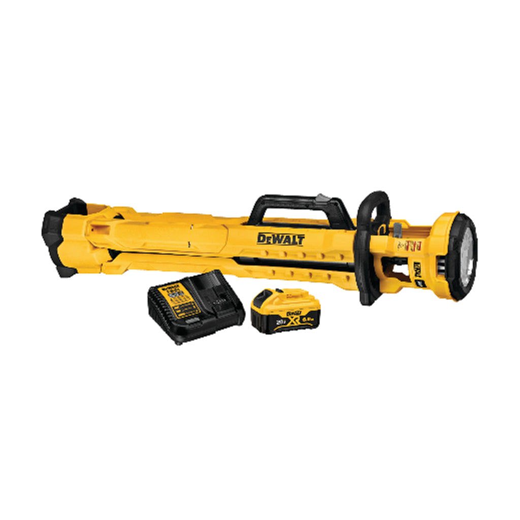 Le trépied sans fil DEWALT 20V MAX * est conçu pour éclairer votre espace de travail dans les conditions de chantier les plus difficiles, avec une durabilité incroyable lors de l'utilisation, du stockage ou du transport. Éliminez la chaleur dangereuse de l'halogène grâce à la technologie LED de pointe qui offre une durée de fonctionnement prolongée et une lumière blanche naturelle. Les paramètres de luminosité variables incluent 3000 lumens en mode élevé et vous permettent de personnaliser l'éclairage de votre zone de travail. La conception compacte avec poignée de transport offre une portabilité facile et s'installe en quelques secondes. La tête rotative et pivotante dirige la lumière là où vous en avez besoin. (Le kit comprend une batterie 20V MAX * 6Ah et un chargeur)