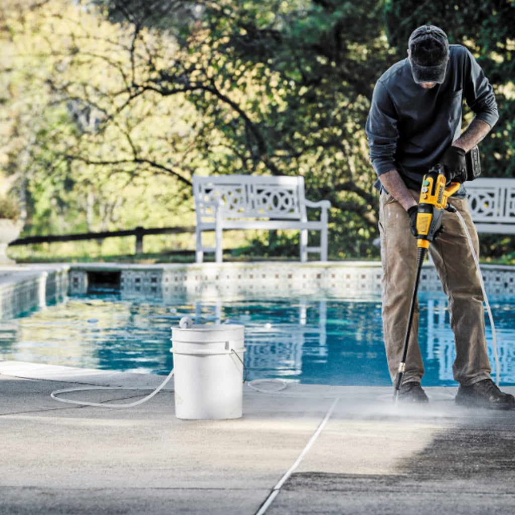 Avec son jet dix fois plus puissant qu’un boyau d’arrosage classique, le nettoyeur à haute pression DEWALT 20 V MAX* est l’arme portative de choix pour vos tâches de nettoyage sur le chantier ou à domicile. Lorsque l’alimentation à partir d’un boyau de jardin est impossible, cet outil polyvalent peut s’approvisionner directement dans n’importe quelle source d’eau douce grâce au tuyau d’aspiration inclus. Grâce à son adaptateur à branchement rapide, le nettoyeur à haute pression se raccorde à un boyau d’arrosage. Nettoyez facilement vos outils et votre équipement, mais aussi vos terrasses, bateaux, meubles d’extérieur et autres véhicules. Pour obtenir le jet convenant à la tâche, sélectionnez l’une des quatre buses comprises – toutes pouvant être rangées à même l’appareil –, ou raccordez la bouteille-réservoir à savon pour s’attaquer aux travaux particuliers. Nouvel ajout à la gamme DEWALT 20 V MAX*, voilà une pièce d’équipement qu’apprécieront tous les professionnels (outil seulement).