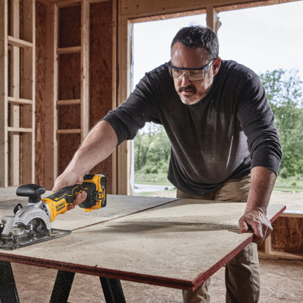 Cette scie circulaire sans fil 4-1 / 2 po sans balai (outil seulement) est fournie avec une lame, un guide de refente et un adaptateur de port de poussière. Le DCS571 présente une conception à engrenage conique permettant aux utilisateurs de couper 2x matériau à 90 degrés et 1x matériau à 45 degrés. Avec le stockage de clé de lame intégré, les utilisateurs peuvent changer de lame avec un minimum de tracas. La poignée allongée optimise la portée pour le sciage à sec et le contreplaqué. À l'aide d'une batterie DCB205, vous pouvez couper jusqu'à 369 pieds linéaires d'OSB de 3/4 po. La batterie et le chargeur sont vendus séparément.