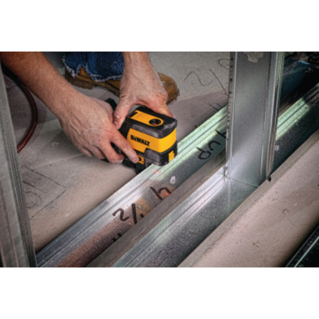 Projette des lignes horizontales et verticales croisées lumineuses; 2 faisceaux lumineux et autonivelants pour un transfert précis du point d'aplomb La base pivotante magnétique intégrée avec des aimants montés à l'avant et à l'arrière à filetage ¼ ''permet une fixation affleurante au rail métallique et en acier
