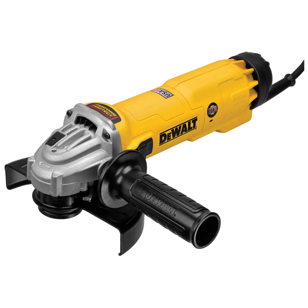 La meuleuse / tronçonneuse haute performance DWE43140 6 ''(150 mm) avec E-Clutch® arrête la meuleuse en cas de pincement ou de calage de la roue. La technologie Dust Ejection System ™ élimine la poussière et les débris pour une protection supplémentaire. L'outil électrique s'arrête avant surchauffe avec Power-Off®Advanced Overload Protection.