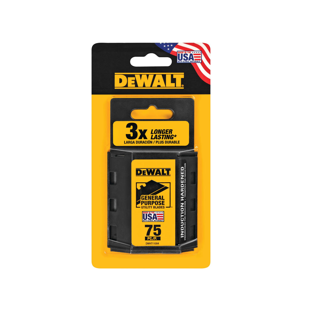 Les lames utilitaires robustes DEWALT sont traitées thermiquement pour une durabilité accrue. Leur géométrie d'affûtage est conçue pour un tranchant optimal dès la première coupe. Chaque paquet contient 75 lames. Elles sont conçues pour être utilisées avec la plupart des couteaux utilitaires standard.