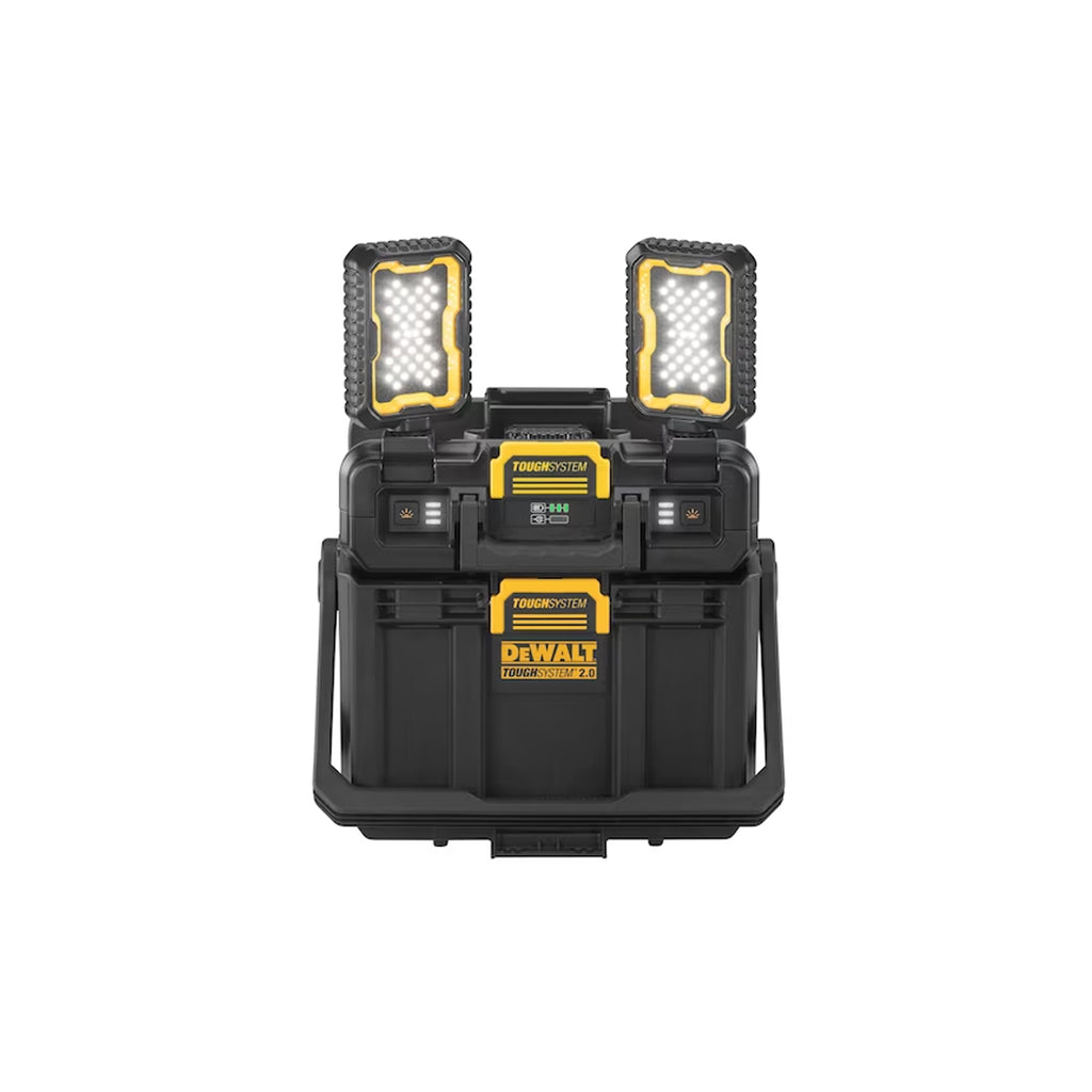 Éclairez les aires de travail et gardez les outils essentiels à portée de main grâce à la lampe de travail réglable DEWALT TOUGHSYSTEM® 2.0 avec rangement. Alimentée par des batteries 20 V MAX*, cette solution d’éclairage modulaire est dotée de 2 lampes DEL à tête pivotante qui offrent jusqu’à 3 heures d’autonomie**. Comprenant un vaste espace de rangement, une poignée pliante intégrée et une conception durable, ce produit compatible avec TOUGHSYSTEM® offre la polyvalence requise pour les chantiers exigeants.