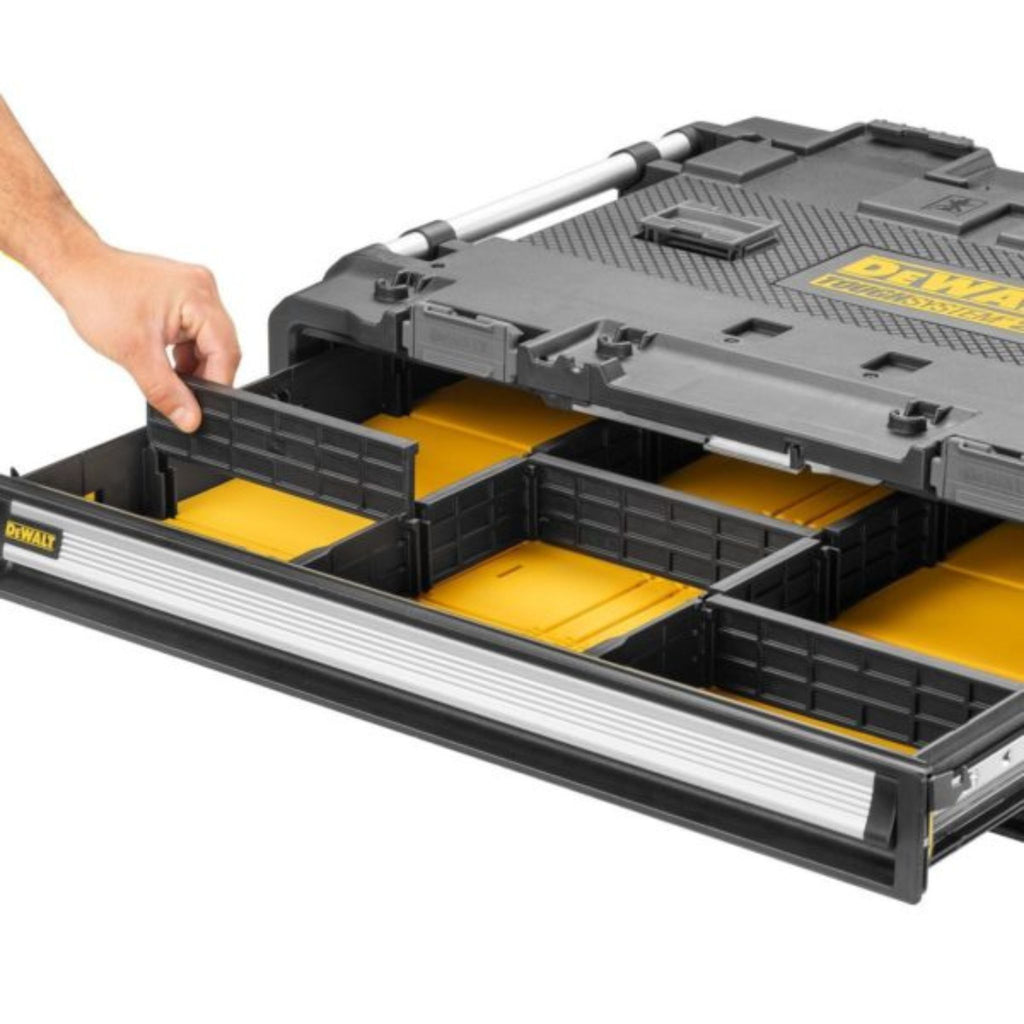 Résistez aux conditions difficiles et développez votre système avec les 2 tiroirs TOUGHSYSTEM 2.0 DXL 30 po. Faisant partie du poste de travail TOUGHSYSTEM 2.0 DXL 30 po (vendu séparément), ces tiroirs polyvalents vous permettent d'optimiser l'organisation avec des séparateurs amovibles et d'accéder rapidement aux outils suspendus sur des supports métalliques latéraux. Conçue avec des tiroirs à ouverture douce et fermeture sécurisée, cette solution adaptable comprend 2 grands tiroirs avec une capacité de charge totale de 55 lb/25 kg (27,5 lb/12,5 kg par tiroir) et un volume de 11,4 gal/42,8 litres