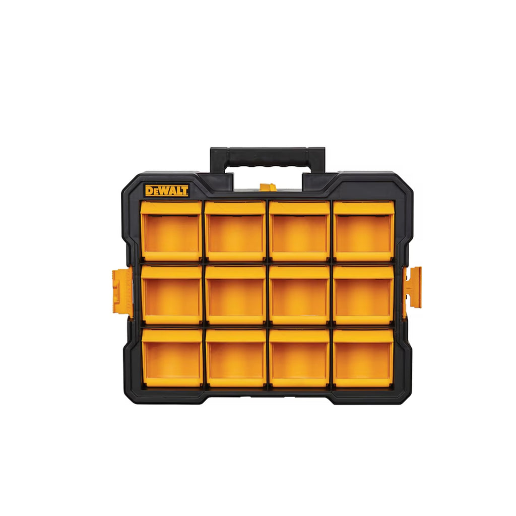 Ce range-tout unique comporte 12 compartiments amovibles pouvant être ouverts individuellement ou retirés pour une accessibilité complète sur le chantier. Un verrou sur le dessus maintient solidement en place tous les compartiments et permet de transporter les articles en toute sécurité. Ce range-tout peut être empilé sur d'autres range-tout de la gamme PRO ou sur un autre module similaire pour un accès optimal à vos petites pièces et accessoires.