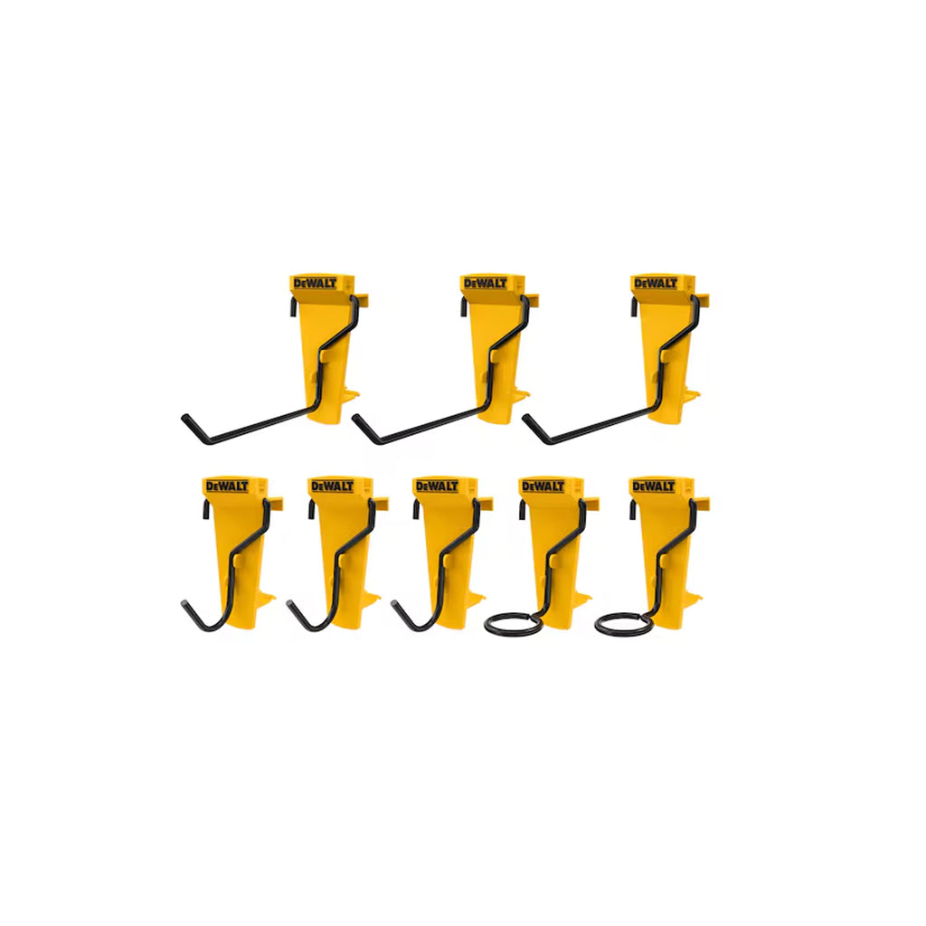 Le lot de 8 crochets à outil manuel fait partie du système de rangement d’atelier DEWALT et se monte directement sur le rail métallique DEWALT. Il comprend 3 types de crochets pour ranger une variété d’outils manuels et d’accessoires. Les crochets s’enclenchent facilement sur le rail métallique DEWALT pour faciliter la pose. Ils sont faits de plastique composite robuste d’une capacité de charge unitaire de 5 lb. afin de supporter une grande variété d’outils manuels et d’accessoires.
