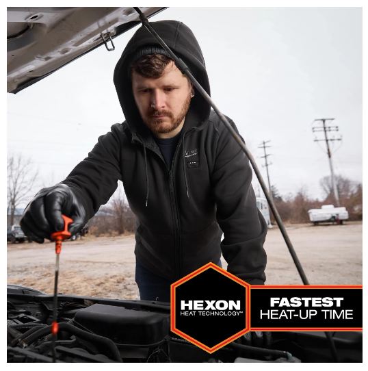 Le sweat à capuche chauffant M12™ offre une chaleur optimale pour un confort optimal. Doté de la nouvelle technologie HEXON HEAT™ de Milwaukee, ce sweat à capuche reste chaud plus longtemps, quelle que soit la température, offre un temps de chauffe ultra-rapide et une protection thermique optimale. Que vous soyez confronté à des températures extérieures glaciales ou que vous évoluiez dans des espaces intérieurs peu chauffés, ce sweat à capuche s'adapte à son environnement pour vous offrir une chaleur efficace en toutes circonstances. Grâce à la technologie HEXON HEAT™ et à une conception de tissu améliorée, vous bénéficiez d'un confort et d'une mobilité optimaux. Fabriqué en molleton de coton/polyester entièrement développé, ce sweat à capuche MILWAUKEE® offre chaleur et liberté de mouvement, qu'il soit porté en couche intermédiaire ou extérieure. La poche passe-batterie dissimulée permet de placer la batterie à l'avant ou à l'arrière, pour une polyvalence accrue selon la situation. Nos vêtements chauffants Milwaukee® sont développés en collaboration avec des utilisateurs de tous les corps de métier, grâce à des recherches continues sur les chantiers.