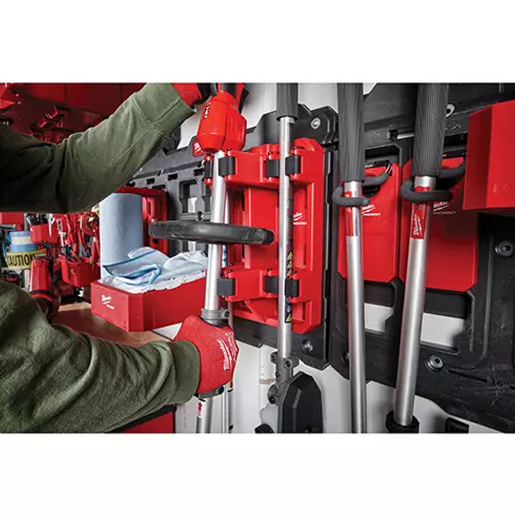 Le support à outils à long manche PACKOUT™ offre le montage le plus sûr lorsqu'il est associé aux plaques murales PACKOUT™, maintenant fermement la solution PACKOUT™ montée sur le mur. Ce support à outils à long manche est optimisé pour stocker des équipements électriques extérieurs, des outils à long manche et plus encore. De plus, notre support à outils à long manche est doté d'une connectivité avec les solutions PACKOUT™ vous permettant de personnaliser entièrement votre atelier. MILWAUKEE® PACKOUT™ est le système de stockage modulaire le plus polyvalent et le plus durable du secteur.