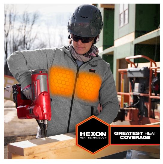 Le sweat à capuche chauffant M12™ offre une chaleur optimale pour un confort optimal. Doté de la nouvelle technologie HEXON HEAT™ de Milwaukee, ce sweat à capuche reste chaud plus longtemps, quelle que soit la température, offre un temps de chauffe ultra-rapide et une protection thermique optimale. Que vous soyez confronté à des températures extérieures glaciales ou que vous évoluiez dans des espaces intérieurs peu chauffés, ce sweat à capuche s'adapte à son environnement pour vous offrir une chaleur efficace en toutes circonstances. Grâce à la technologie HEXON HEAT™ et à une conception de tissu améliorée, vous bénéficiez d'un confort et d'une mobilité optimaux. Fabriqué en molleton de coton/polyester entièrement développé, ce sweat à capuche MILWAUKEE® offre chaleur et liberté de mouvement, qu'il soit porté en couche intermédiaire ou extérieure. La poche passe-batterie dissimulée permet de placer la batterie à l'avant ou à l'arrière, pour une polyvalence accrue selon la situation. Nos vêtements chauffants Milwaukee® sont développés en collaboration avec des utilisateurs de tous les corps de métier, grâce à des recherches continues sur les chantiers.