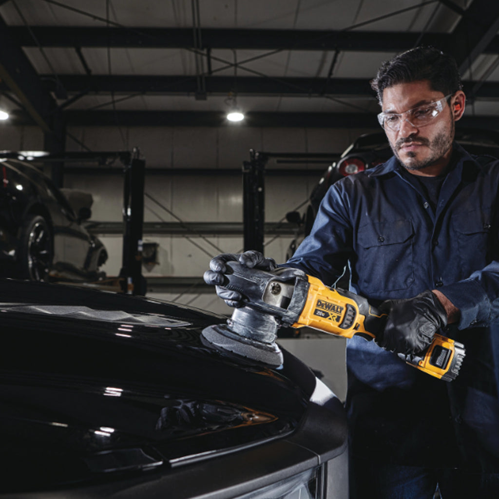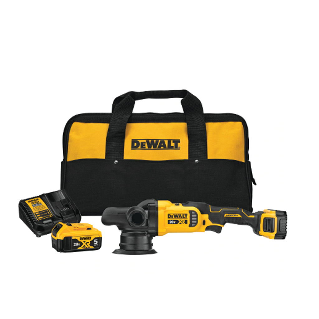 Ce kit sans fil 20 V MAX * comprend un polissoir à orbite aléatoire de 5 pouces, deux batteries 20 V MAX * 5,0 Ah, un chargeur et un sac de kit. Le moteur sans balais à haute efficacité offre jusqu'à 75% d'autonomie en plus par rapport aux brosses. La gâchette et le cadran à vitesse variable permettent un meilleur contrôle pendant les applications de polissage de voiture, de phares, de pare-brise et de verre. Le diamètre d'orbite de 2,1 po combiné à la plaque d'appui de 5 po incluse est recommandé pour la plupart des applications.