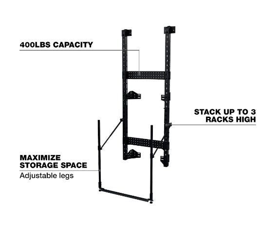 Le cadre de rack PACKOUT™ fait partie du système de stockage modulaire le plus polyvalent et le plus durable. D'une capacité de charge de 181 kg, il peut être monté sur une camionnette, un conteneur CONEX, une remorque fermée ou un mur d'atelier. Associé au kit de rack PACKOUT™, l'espace de rangement est optimisé : le cadre et les pieds télescopiques du kit sont réglables pour un montage au-dessus des passages de roue et permettent le rangement de boîtes à outils roulantes. Le cadre de rack PACKOUT™ peut empiler jusqu'à 3 racks et est conçu pour se monter facilement côte à côte et s'étendre horizontalement sur un mur. Notre système de rangement modulaire PACKOUT™ optimise la productivité en optimisant l'espace de stockage et en restant organisé grâce à plus de 125 solutions.