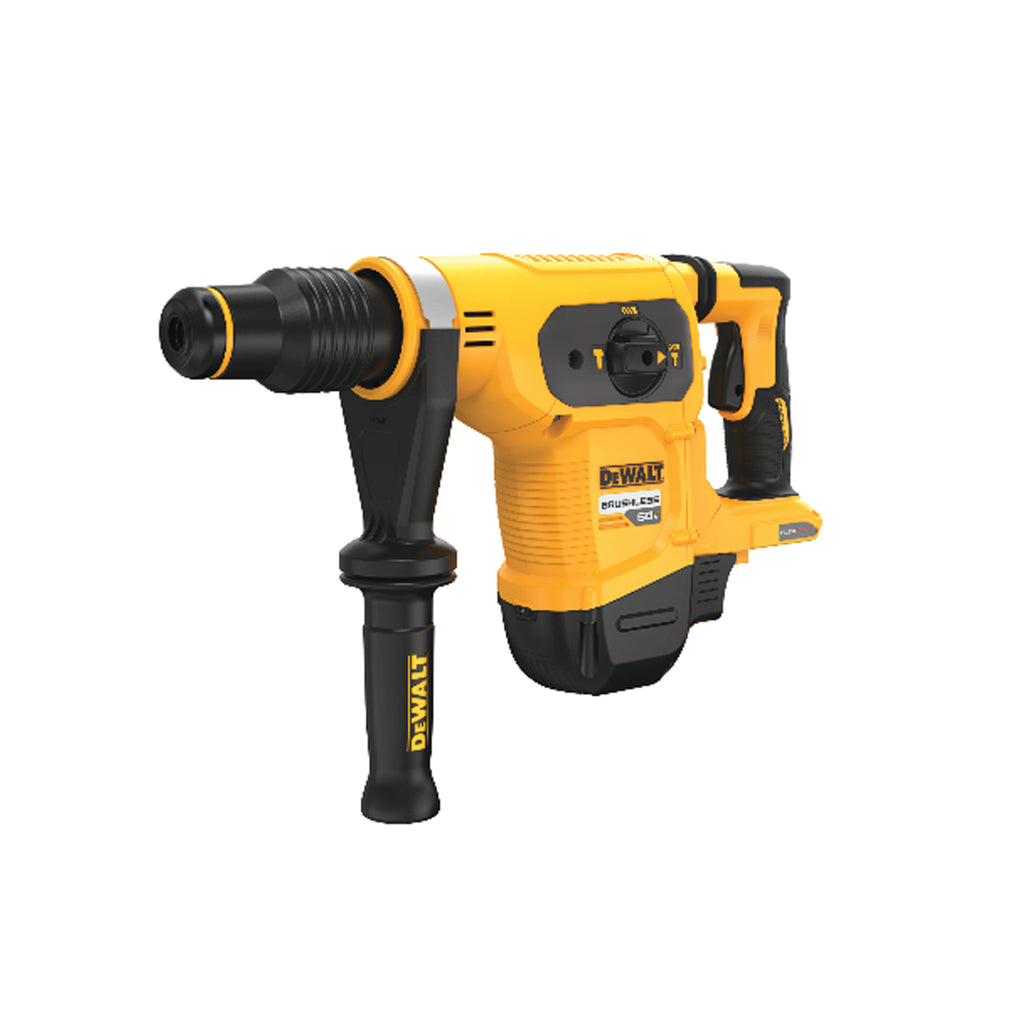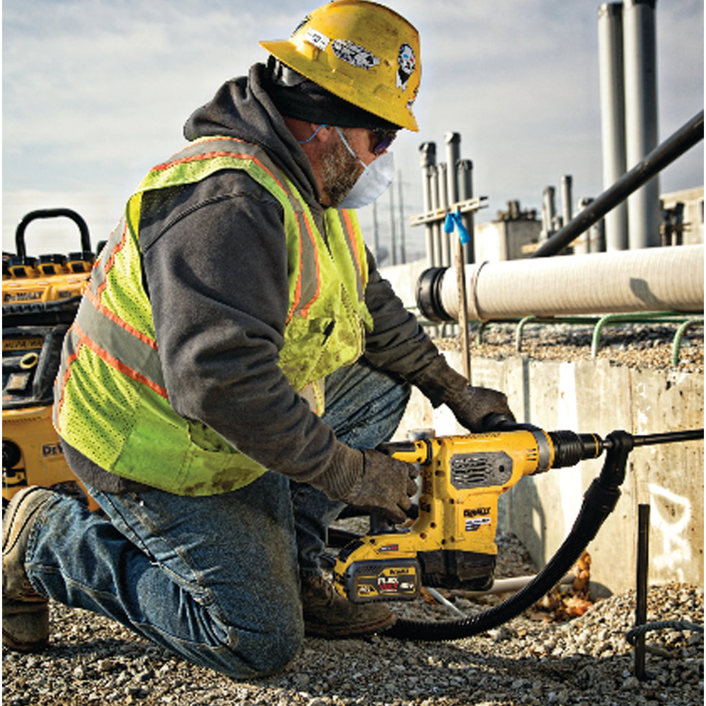Le marteau combiné SDS MAX sans balais 60 V MAX * 1-9 / 16 po est un marteau léger à haute performance qui est alimenté par un moteur sans balais et un mécanisme durable de conception allemande. Il fournit une énergie d'impact de 6,1 Joules pour un perçage et un déchiquetage rapides, même dans le béton le plus dur. L'électronique à vitesse constante permet à l'outil de maintenir sa vitesse sous charge. La conception légère le rend idéal pour le forage horizontal pour les applications de goujons d'armature n ° 3 à n ° 6, le carottage à sec jusqu'à 3 po et l'écaillage dans tous les murs et plafonds moyens à supérieurs. Ce marteau fait partie de la gamme de produits PERFORM & PROTECT ™, intégré au système anti-rotation E-CLUTCH® et au système SHOCKS Active Vibration Control®. E-CLUTCH® arrête l'outil dans les situations de blocage. SHOCKS ™ réduit les vibrations ressenties par l'utilisateur au niveau des poignées, par rapport aux marteaux perforateurs sans cette fonction. Cet outil est fourni avec Tag Ready ™ afin que les utilisateurs et les entreprises puissent attacher le DEWALT Tag ™ et suivre son emplacement pratiquement n'importe où via l'application DEWALT Tool Connect ™. 6,1 Joules d’énergie d’impact pour un perçage et un écaillage rapides, même dans le béton le plus dur.