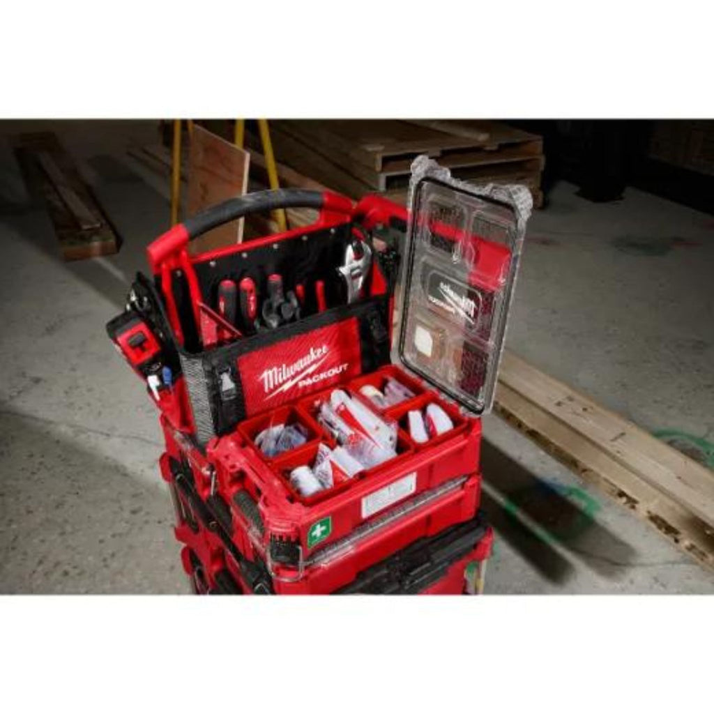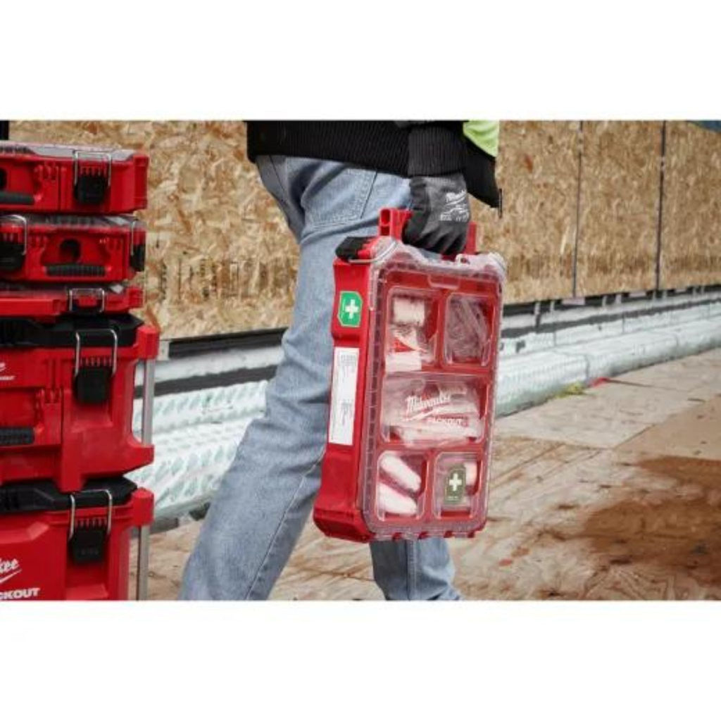 La petite trousse de premiers secours de base MILWAUKEE® PACKOUT™ Type II fait partie du système de stockage modulaire le plus polyvalent, le plus durable. Le corps résistant aux chocs de la trousse de premiers secours Milwaukee protège le contenu des chutes et des chocs sur le chantier. Un joint d'étanchéité IP65 protège les bandages, les adhésifs, les antibiotiques et autres fournitures médicales essentielles de la pluie et d'autres débris de chantier. Les joints de poubelle anti-déplacement de cette trousse de premiers soins de chantier maintiennent tout le contenu en sécurité et à sa place. L'organisateur MILWAUKEE® PACKOUT™ est livré avec 92 articles de premiers soins essentiels répondant à la norme CSA Z1220-2017 (R2021) Type II Basic Small, adaptés aux blessures les plus courantes que vous rencontrez sur le chantier. Le couvercle transparent de l'organisateur empêche le contenu de migrer et de se déplacer pendant le transport.