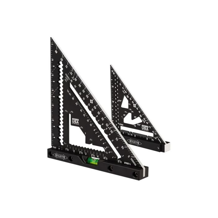 L'équerre de charpentier STILETTO® 7'' est conçue avec plus d'encoches de disposition pour vous aider à construire plus rapidement. Des encoches supplémentaires facilitent la disposition du matériau de 2 pi x 6 pi, la déchirure des planches et le marquage des emplacements des chevrons. La découpe BOMBER™ permet des mesures de crampons répétables, tandis que les marquages inférieurs du talon offrent une polyvalence de marquage. Le Carpenter Square de 7 pouces est entièrement usiné, avec une finition antireflet et le revêtement le plus durable.