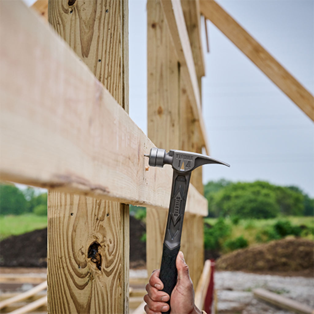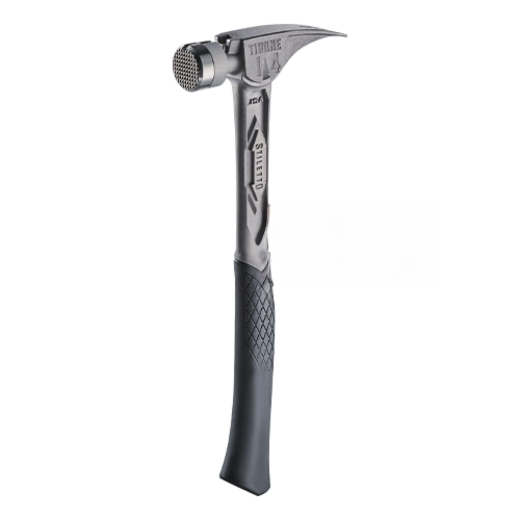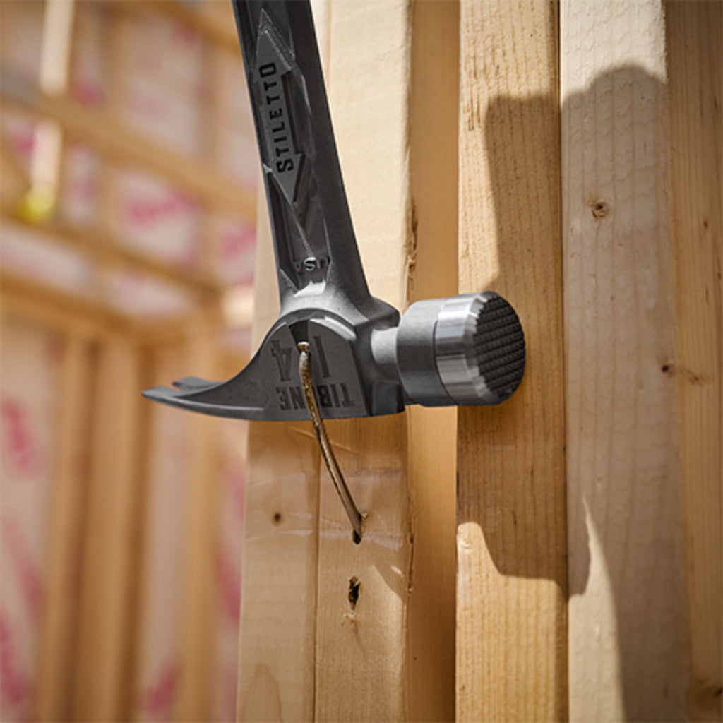 Le marteau STILETTO® 14oz TIBONE™ avec face en acier fraisé et manche incurvé est notre marteau le plus puissant et le plus durable. Ce marteau entièrement en titane pèse 45 % de moins et frappe comme de l'acier. La conception durable TIBONE™ est idéale pour encadrer et tirer les clous. L'extracteur de clous latéral à 180° et le démarreur de clous magnétique s'adaptent aux clous jusqu'à 16D et duplex. Le TIBONE™ présente une face en acier remplaçable et plusieurs couleurs de poignée, prolongeant la durée de vie du marteau et apportant une touche personnelle.