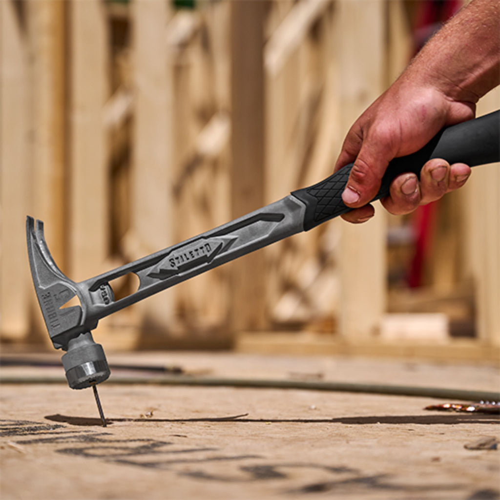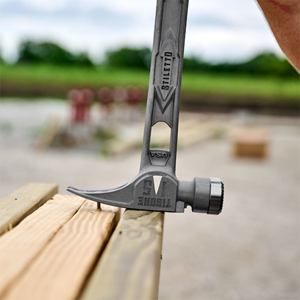 Le marteau STILETTO® 15oz TIBONE™ avec face en acier fraisé et manche incurvé est notre marteau le plus puissant et le plus durable. Ce marteau entièrement en titane pèse 45 % de moins et frappe comme de l'acier. La conception durable TIBONE™ est idéale pour encadrer et tirer les clous. L'extracteur de clous latéral à 180° et le démarreur de clous magnétique s'adaptent aux clous jusqu'à 16D et duplex. Le TIBONE™ présente une face en acier remplaçable et plusieurs couleurs de poignée, prolongeant la durée de vie du marteau et apportant une touche personnelle.