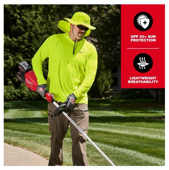 Faisant partie de la collection WORKSKINMC, le chapeau pare-soleil est CONÇU POUR LUTTER CONTRE LA TRANSPIRATION. Restez protégé et confortable avec le chapeau pare-soleil WORKSKINMC, offrant une protection solaire UPF 50+ et un large rebord complet de 3 po. Le protège nuque amovible protège votre cou et peut être retirée et rangée dans la poche intégrée. Pour plus de polyvalence, le protège-nuque peut être fixée à n'importe quelle casquette en glissant les clips de chaque côté de la visière et en les tirant vers l'avant pour un ajustement sécurisé. Le chapeau pare-soleil WORKSKINMC est doté d'un bandeau absorbant personnalisé et d'une technologie anti-odeur pour vous garder à l'aise pendant que vous travaillez. Sa coque résistante à l'eau protège contre la pluie légère. Conçu avec un tissu léger et respirant, ce chapeau favorise la circulation de l'air à travers les ventilations autour de la couronne, vous gardant au frais. Fixez le chapeau pare-soleil WORKSKINMC à votre tête en utilisant le cordon de serrage réglable ou le cordon de menton. Relevez le bord pour un look polyvalent ou pour accommoder des écouteurs et une protection auditive. Les produits Milwaukee® WORKSKINMC sont développés en collaboration avec les commentaires des utilisateurs de divers métiers grâce à une recherche continue sur les chantiers.