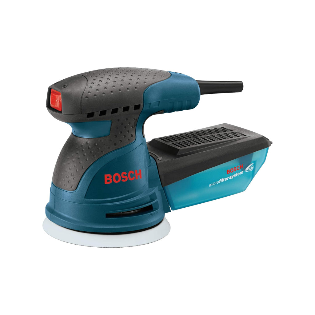 La ponceuse excentrique/polisseuse à une seule vitesse de 5 po ROS10 Bosch assure un enlèvement rapide et garantit une très bonne qualité de surface. Elle permet aux menuisiers et charpentiers de finition de poncer rapidement et avec précision. Elle est conçue pour éviter la formation de rayures sur la pièce grâce à un système intégral de freinage et d’amortissement des vibrations du plateau. Le système de fixation auto-agrippant Bosch assure un maintien ferme du disque pendant son utilisation. De plus, le plateau de ponçage micro-cellulaire est souple afin une qualité de surface parfaite à la fois sur les surfaces planes et sur les surfaces bombées ou profilées. Dotée d’un corps et d’une partie supérieure à prise souple assurant un grand confort, cette ponceuse de 2,5 A fonctionne avec 12 000 OPM pour un très bon enlèvement de matière. Elle inclut également un système de filtrage des poussières fines.