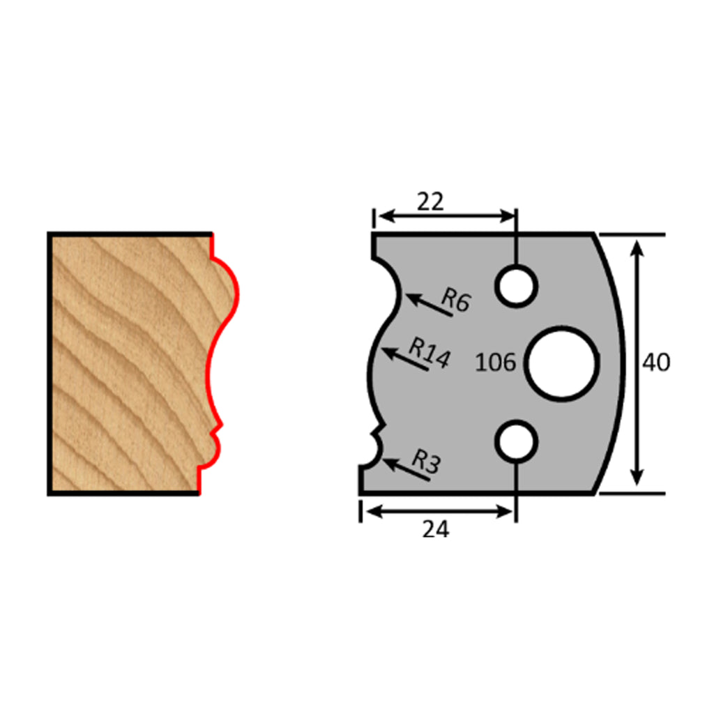 Couteau à profil de moulure couronnée, épaisseur 4 mm, longueur 40 mm Couteau à profil de moulure couronnée, épaisseur 4 mm, longueur 40 mm